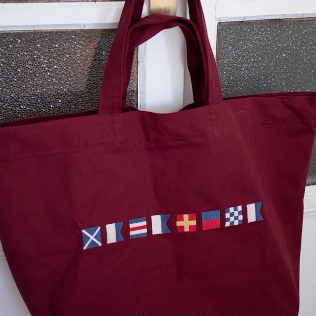 Bolsade loneta granate con banderas náuticas